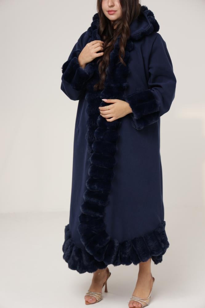 فروة نسائي قماش جوخ بفرو مموج من الخارج