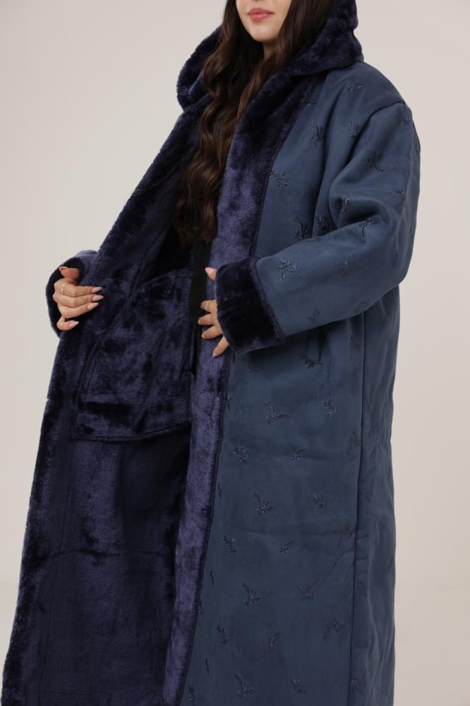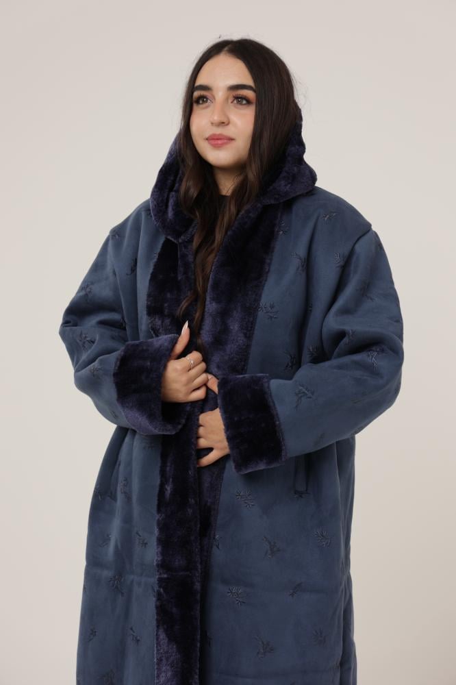 فروة نسائي قماش جوخ بفرو ارنب صناعي من الخارج