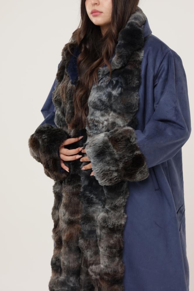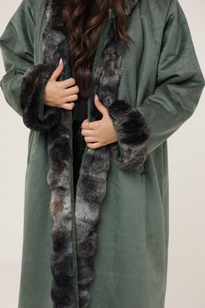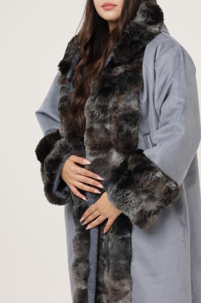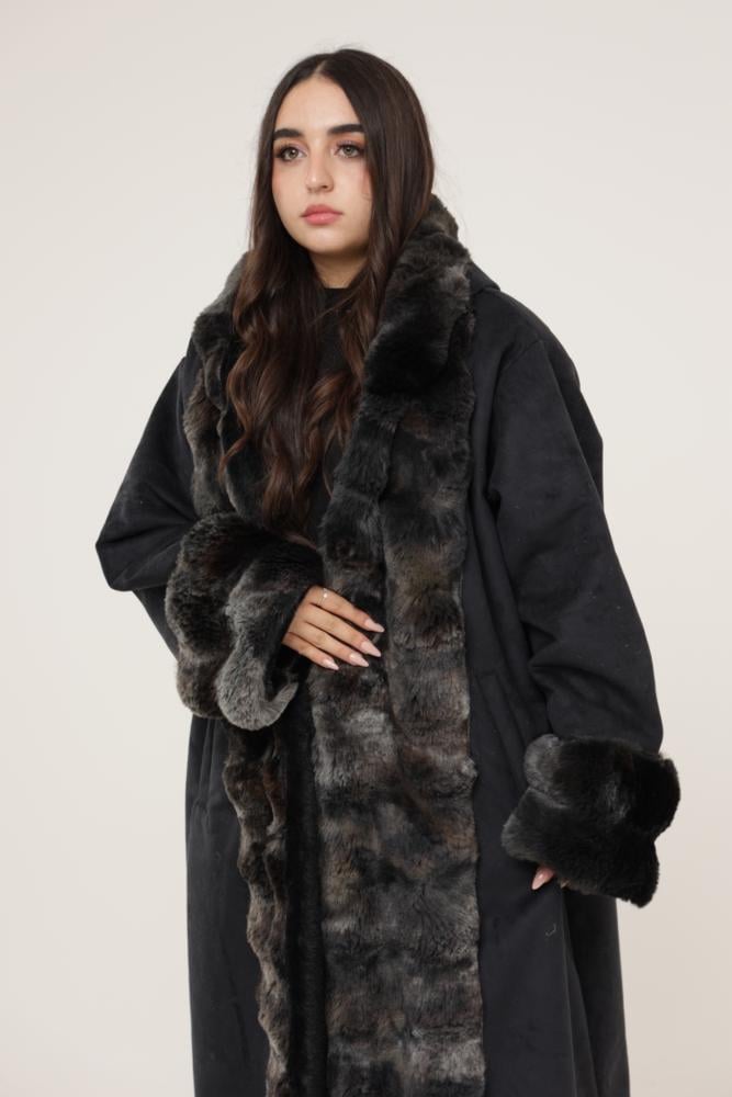 فروه نسائي قماش شامواه بفرو أرنب من الأطراف