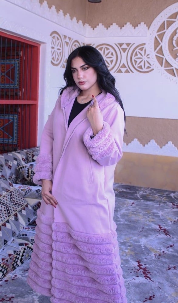 فروة نسائي قماش مخمل تطريز مغربي مع قبعه