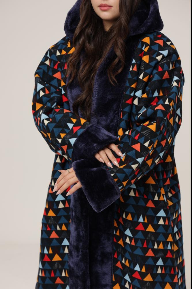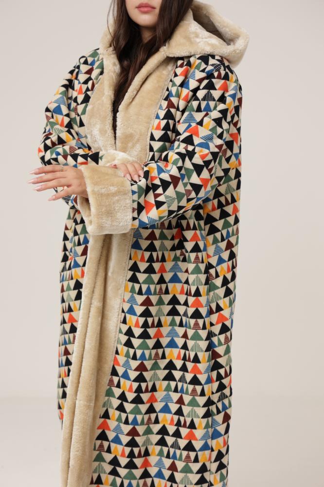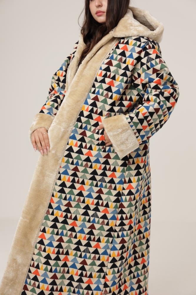 فروة نسائي قماش جلد مبطن بفرو من الداخل وفرو ارنب صناعي من الخارج